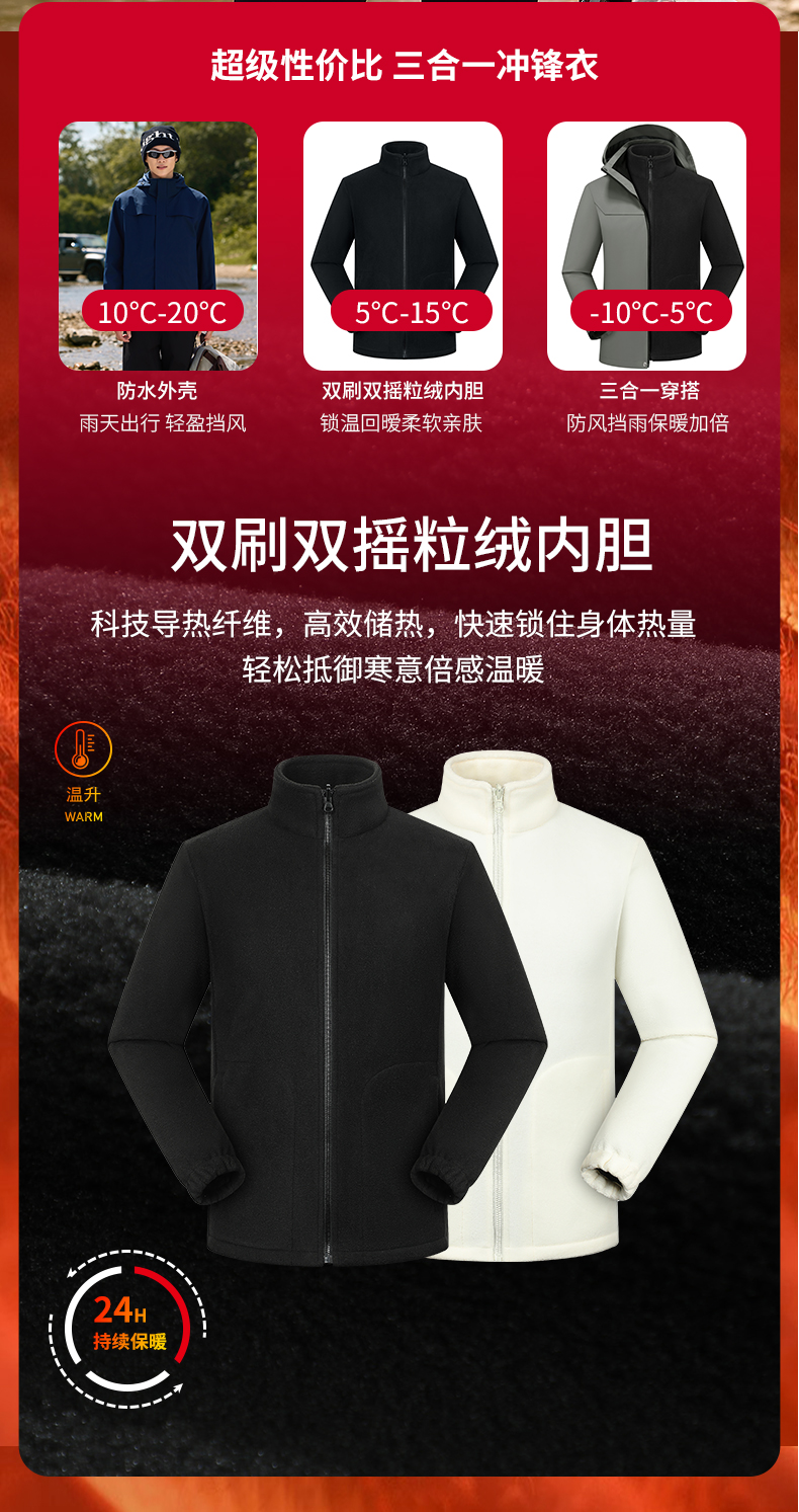 秋冬三合一两件套摇粒绒内胆可脱卸工作服男女装外套