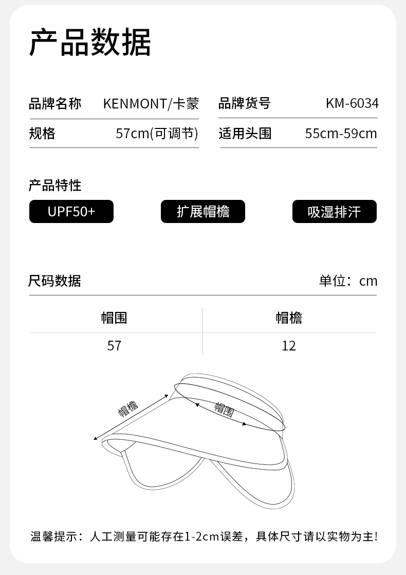 卡蒙(Kenmont) 防晒空顶帽(单位:顶 ) 140雾粉色