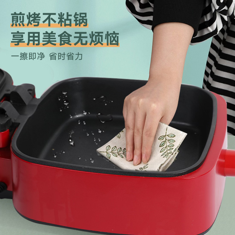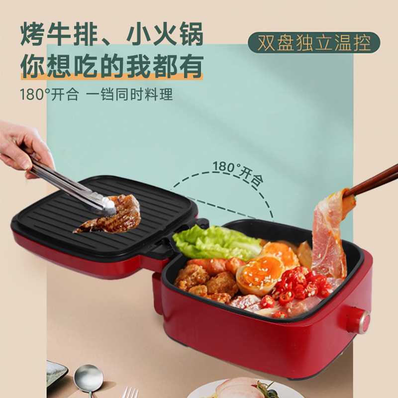 6CM加深烤盘 180度自由开合双盘设计 1500W大火力烤盘快速加热 双盘独立温控 煎烤不粘易清洗