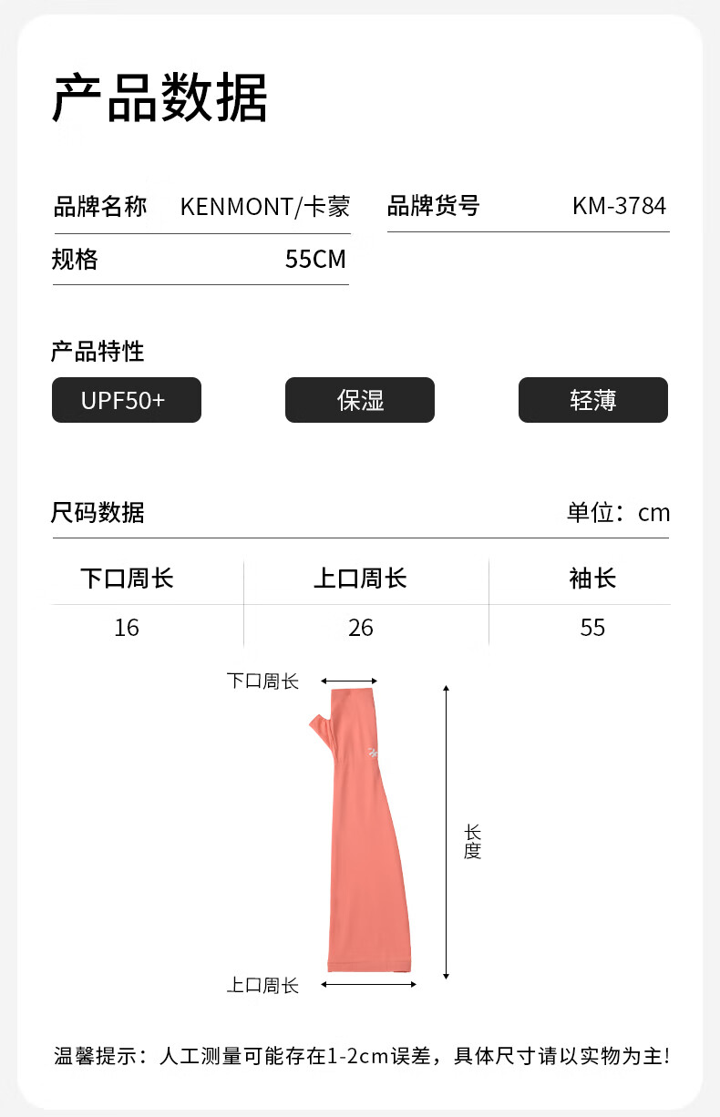 卡蒙(Kenmont) 防晒手套长款冰袖手套护袖宽松(单位:双 ) 98阿卡珊瑚