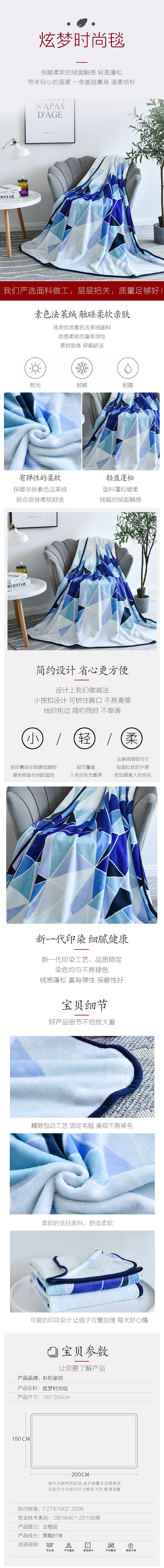 杉杉(FIRS) QFS-18420 炫梦时尚毯 180x200cm
