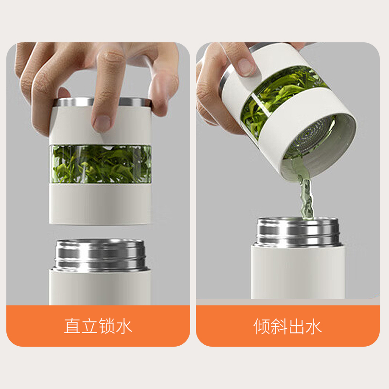 1. 轻松分离茶水 2.一杯多用,可变旋盖保温杯 3. 独立茶仓设计,随心控制茶汤浓度与冲泡时间 4