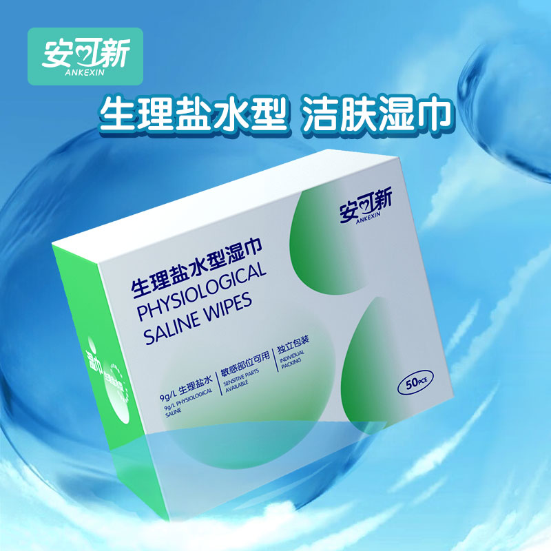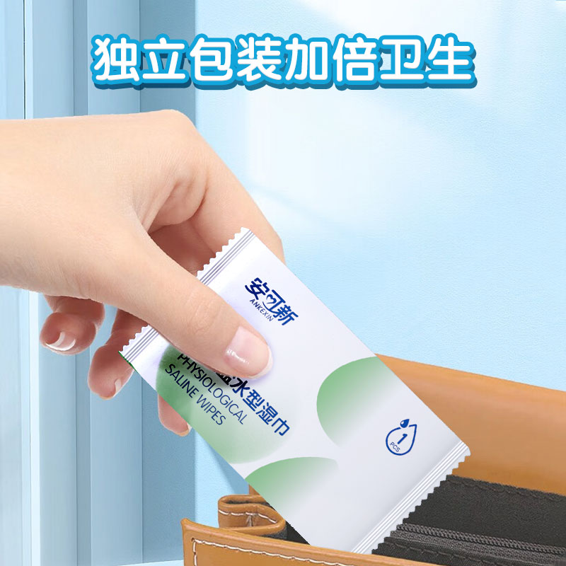 安可新生理盐水 湿敷巾 鼻炎纸巾温和湿敷清理伤口 眼鼻清洁50片一盒*两盒装(单位:盒) 灰绿色