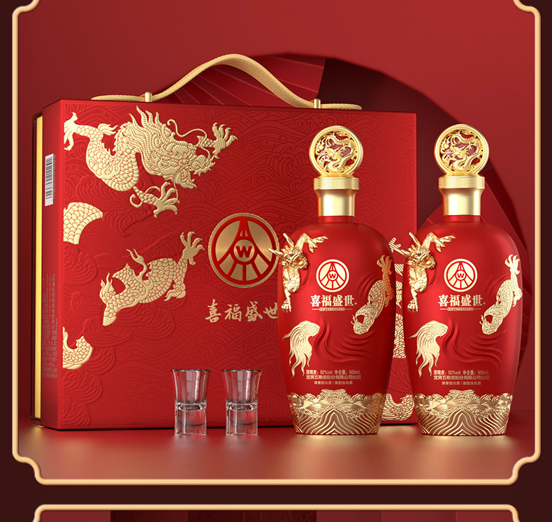 股份出品 喜福盛世祥瑞双支礼盒52度浓香型