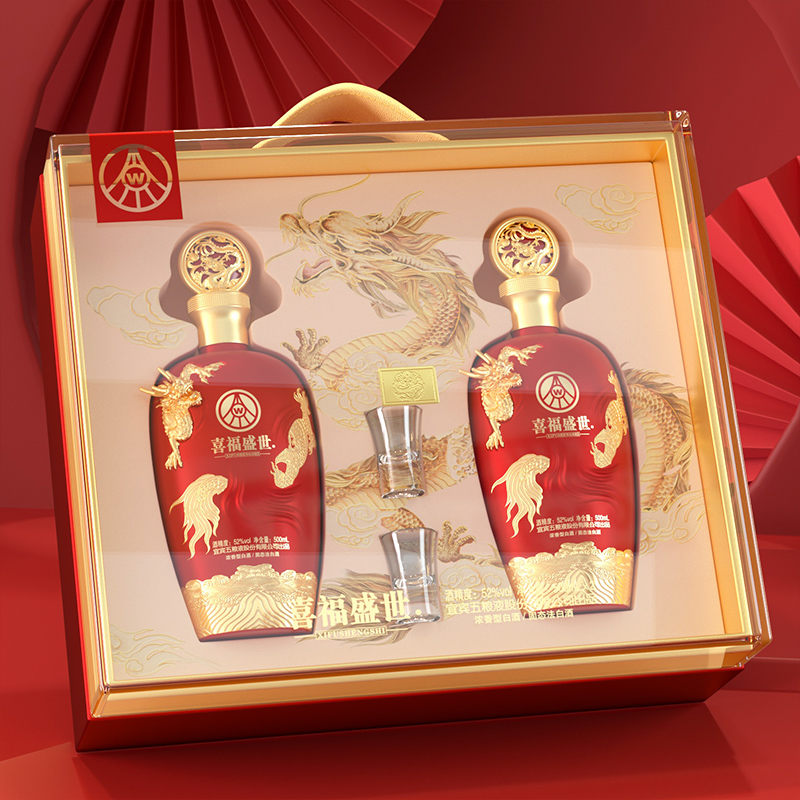 股份出品 喜福盛世祥瑞双支礼盒52度浓香型