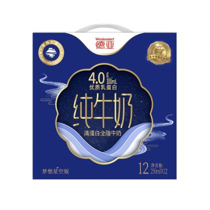 德亚4.0g 新西兰进口高蛋白全脂纯牛奶250ml*12礼盒
