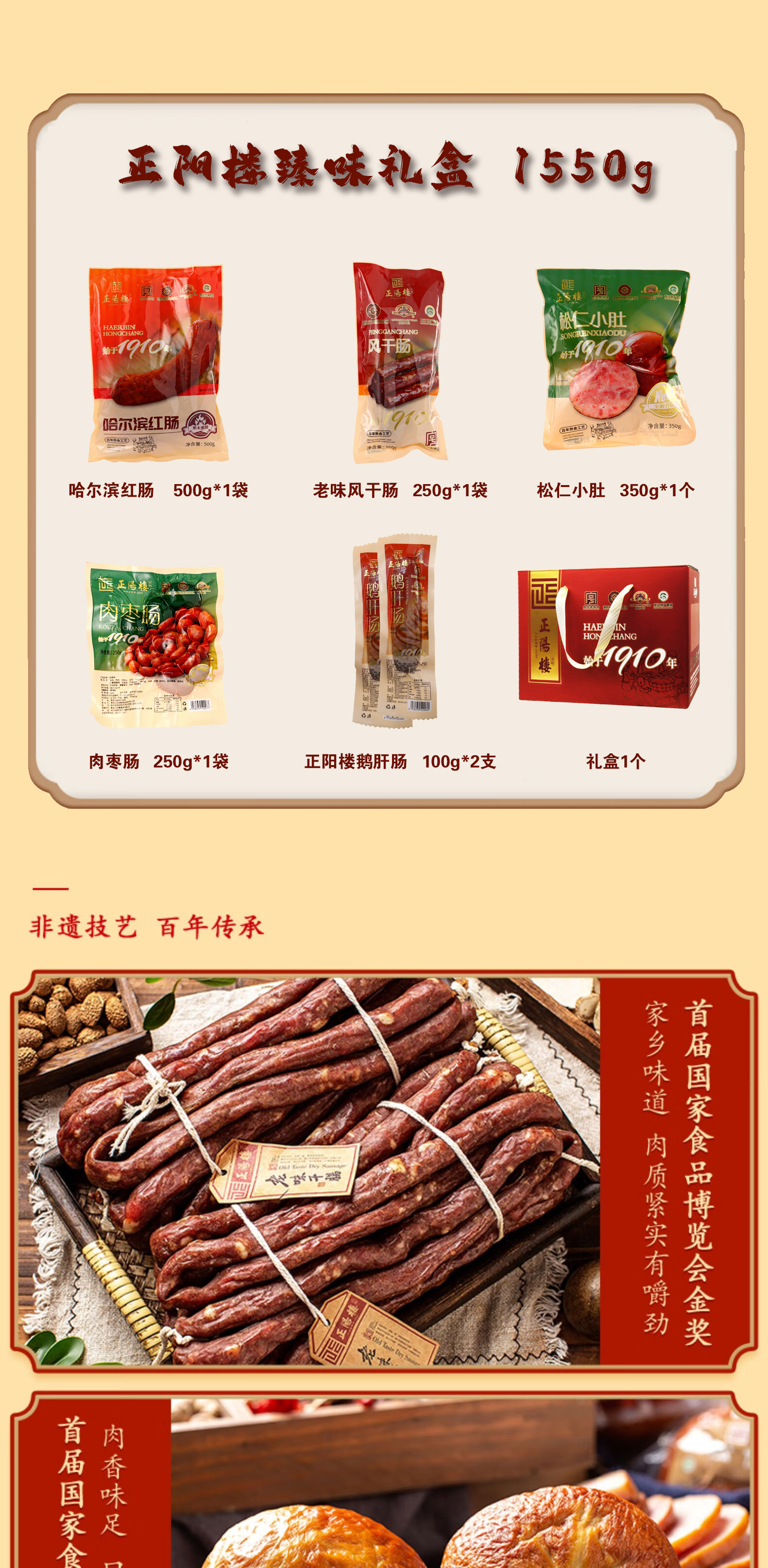 正阳楼红肠 500g*1袋 正阳楼干肠 250g*1袋 正阳楼松仁小肚 350g*