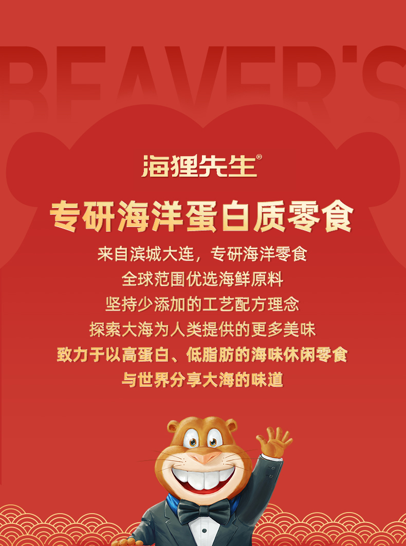 「海狸先生」油炸鱿鱼丝33g/袋 「海狸先生」带鱼罐头100g 「海狸先生」生虾片150g/袋 「海狸先生」香辣梗片100g/袋 「海狸先生」芝麻夹心海苔脆35g 「海狸先生」肉松夹心海苔卷180g/盒 「海狸先生」裙带菜100g/袋(口味随机)