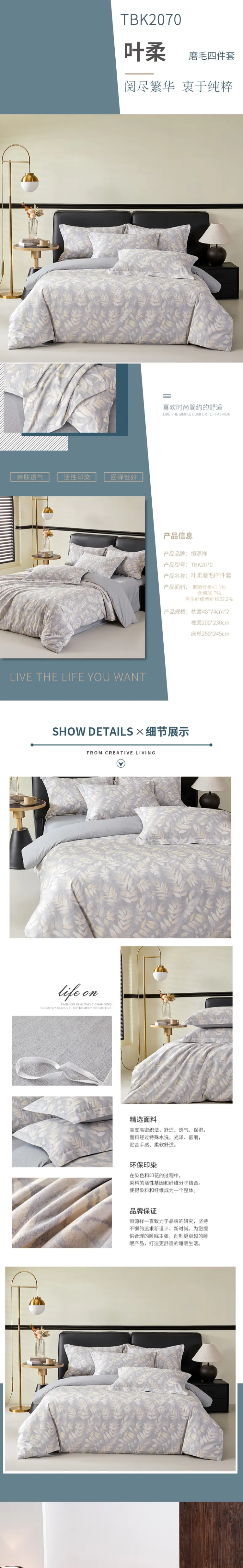 恒源祥叶柔磨毛床品四件套200*230cm200*230cm/1件装
