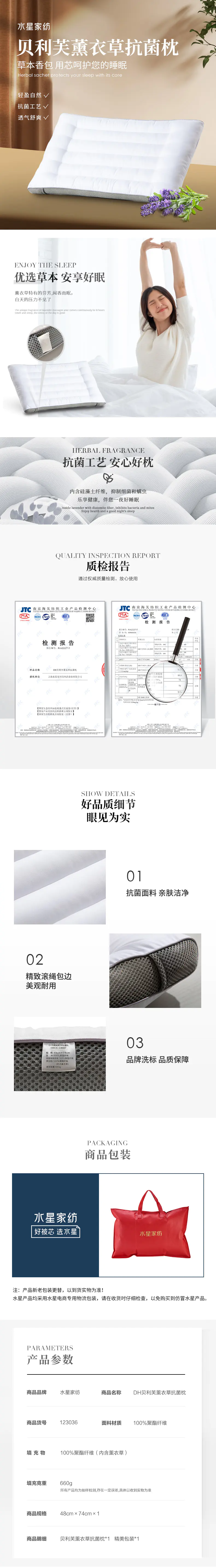 水星家纺贝利芙薰衣草抗菌枕1支默认/1件装