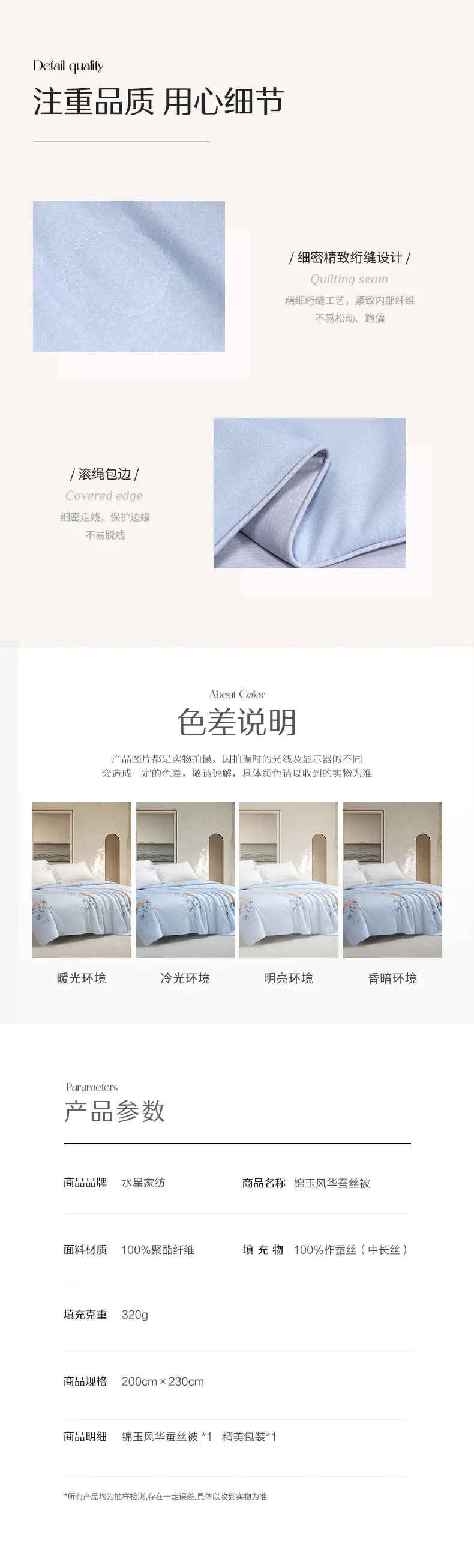 水星家纺锦玉风华蚕丝被200*230cm320g+春眠抗菌对枕套装默认/1件装