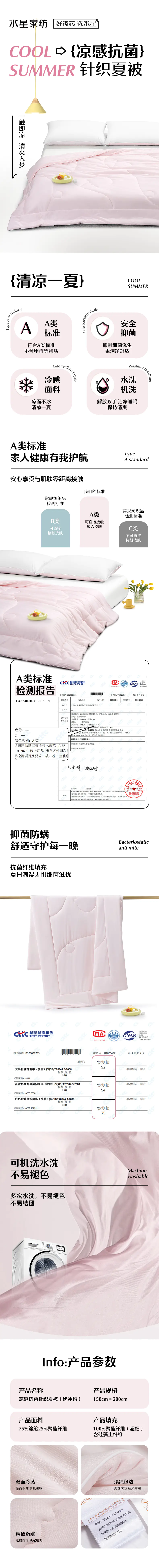 【顺丰配送】水星家纺凉感抗菌针织夏被150*200cm填充克重300g默认/1件装