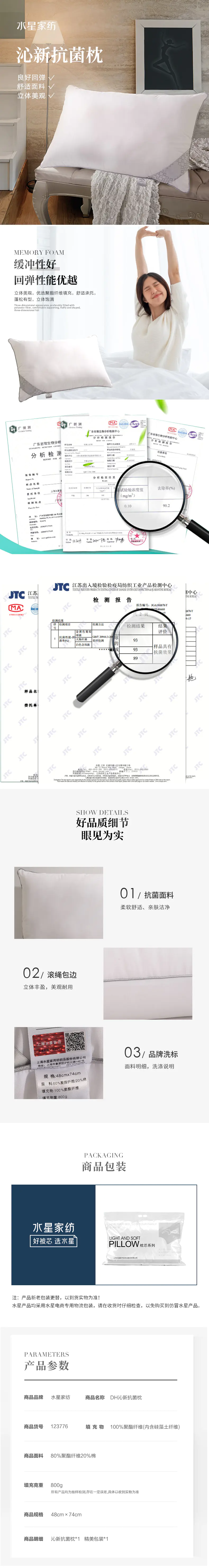 水星家纺沁新抗菌枕1支默认/1件装
