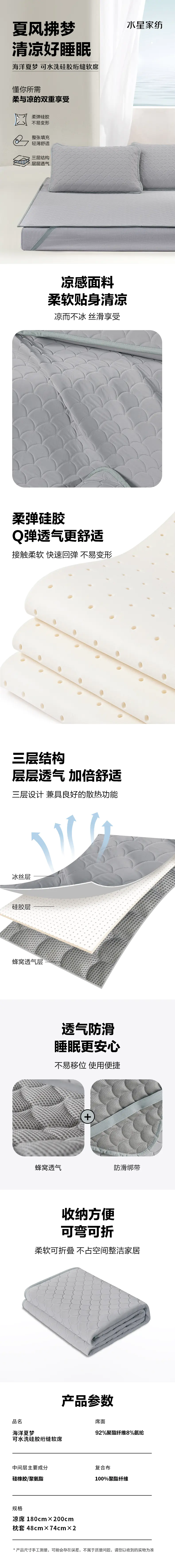 水星家纺海洋夏梦可水洗硅胶绗缝软席三件套180cm*200cm默认/1件装