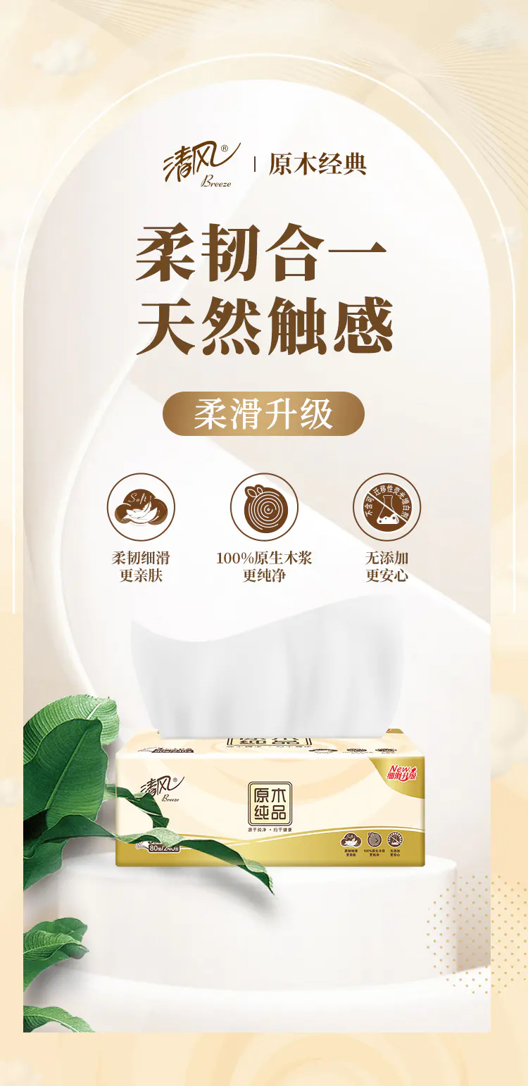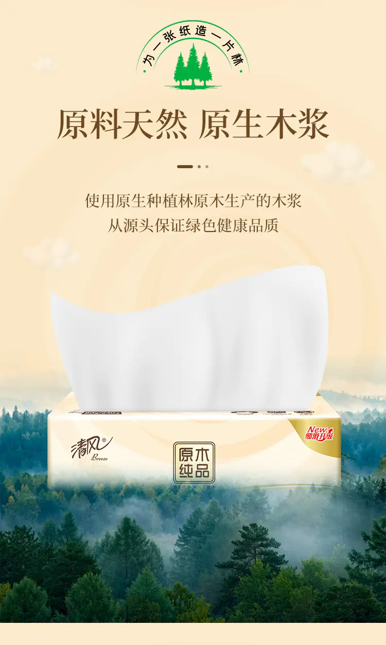 Breeze/清风原木纯品3层抽取式面巾纸整箱80抽*30包S码AR10YHF默认/1件装
