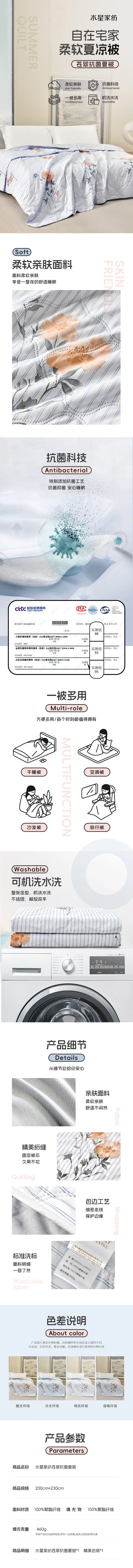 水星家纺DH苍翠抗菌夏被200cm*230cm130535水星家纺DH苍翠抗菌夏被200cm*230cm130535/1件装