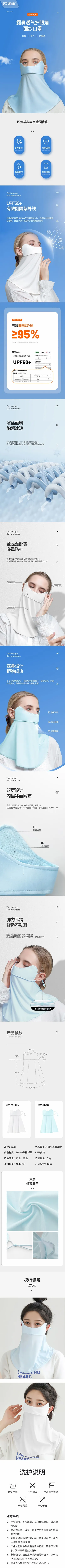 凯速冰丝护颈防晒透气面罩白色FSMZ002/1件装