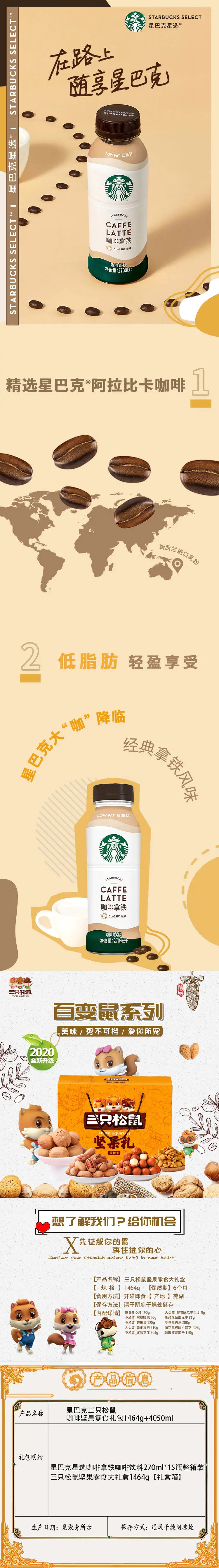 【京东配送】星巴克三只松鼠咖啡坚果零食礼包1464g+4050ml默认/1件装