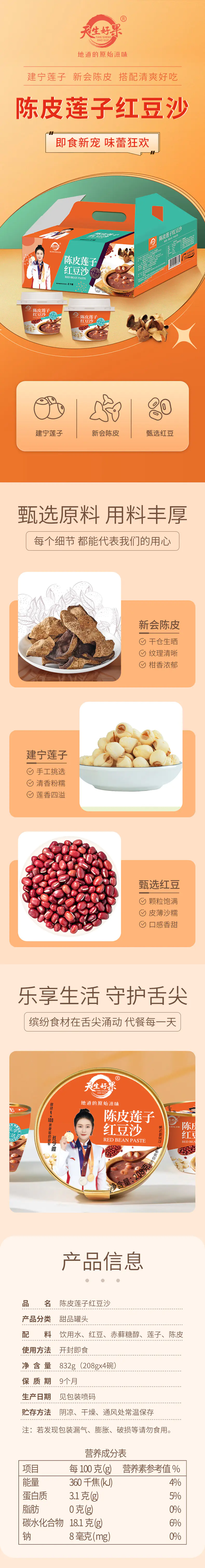天生好果即食陈皮莲子红豆沙832g默认/1件装