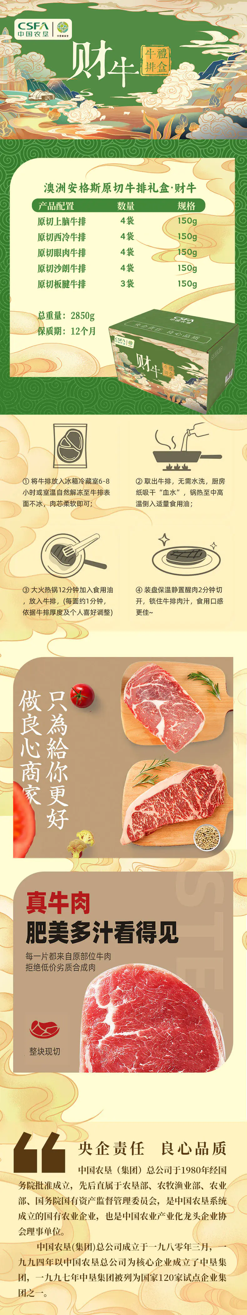 【顺丰配送】CSFA/中国农垦中垦飨味堂·澳洲安格斯财牛原切牛排礼盒2850g默认/1件装