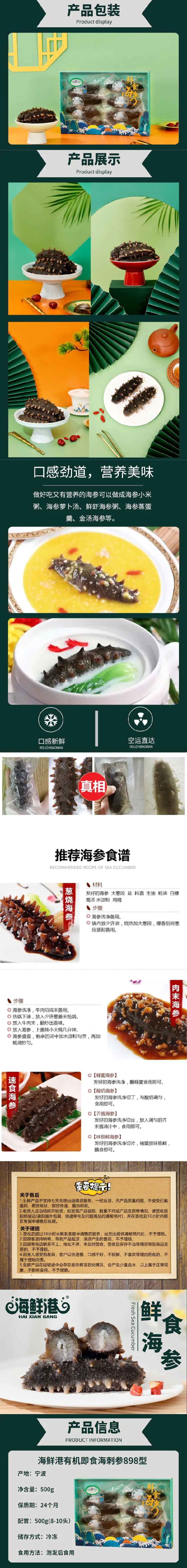 【顺丰配送】海鲜港有机即食海刺参8-10头礼盒898型500g默认/1件装