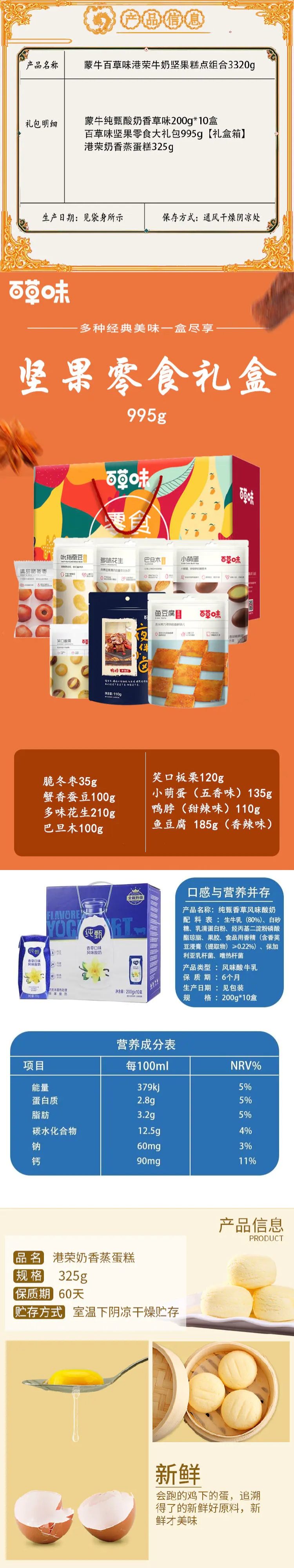 【京东配送】蒙牛百草味港荣牛奶坚果糕点组合3320g默认/1件装