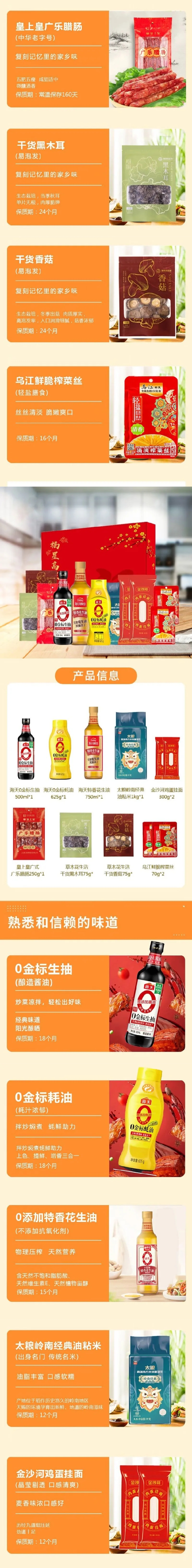 海天/太粮/金沙河/乌江/皇上皇/朝天子粮油米面调味干货组合大礼包4095款海天0金标生抽500ml*1 +海天0金标蚝油625g*1+海天特香花生油750ml*1+太粮岭南经典油粘米1kg*1+乌江