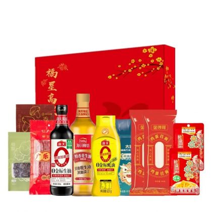 海天/太粮/金沙河/乌江/皇上皇/朝天子粮油米面调味干货组合大礼包4095款海天0金标生抽500ml*1 +海天0金标蚝油625g*1+海天特香花生油750ml*1+太粮岭南经典油粘米1kg*1+乌江
