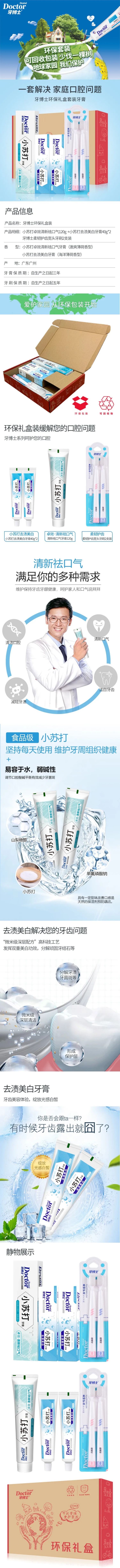 卓效清新祛口气牙膏120g+小苏打去渍美白牙膏40g*2+柔韧护齿宽头牙刷*2/1件装