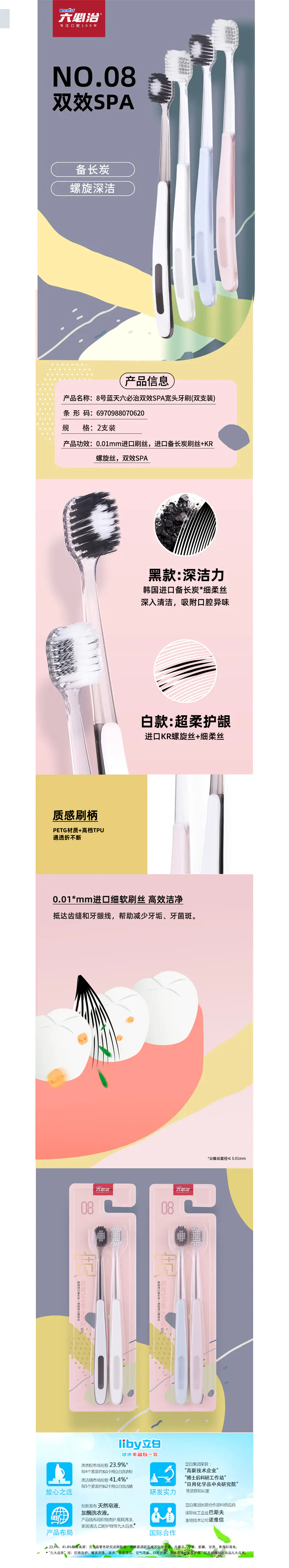 Lantian/蓝天六必治双效SAP宽头牙刷2支*5组颜色随机不接受指定默认/1件装