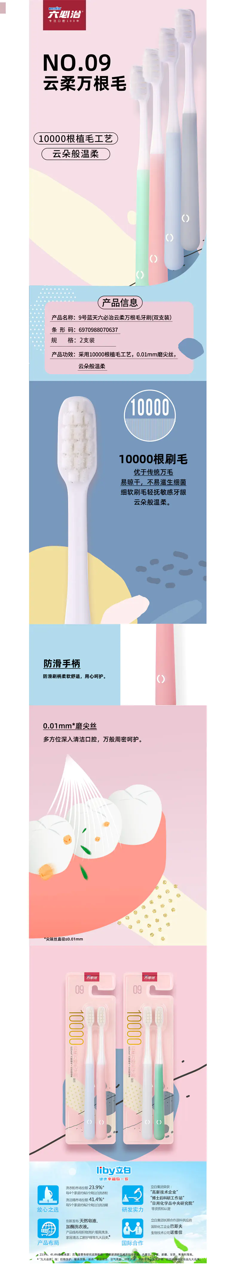 Lantian/蓝天六必治云柔万根毛牙刷2支×*5组颜色随机不接受指定默认/1件装
