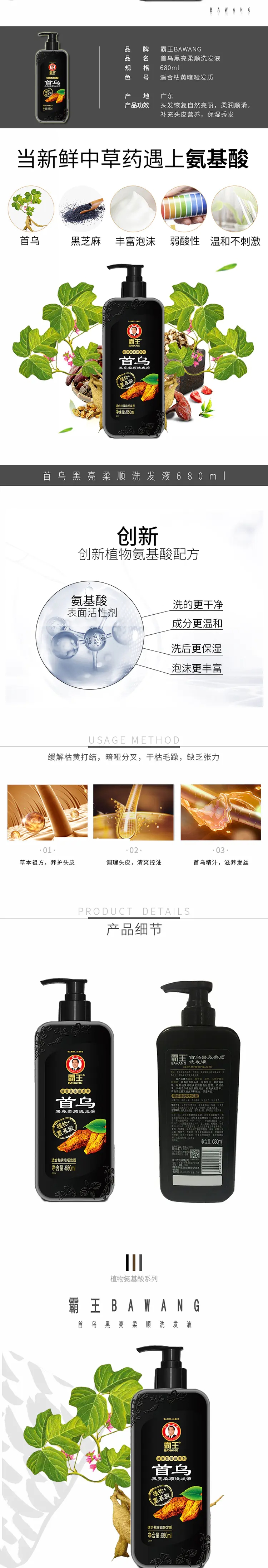 霸王植物氨基酸系列首乌黑亮柔顺洗发液680ml默认/1件装