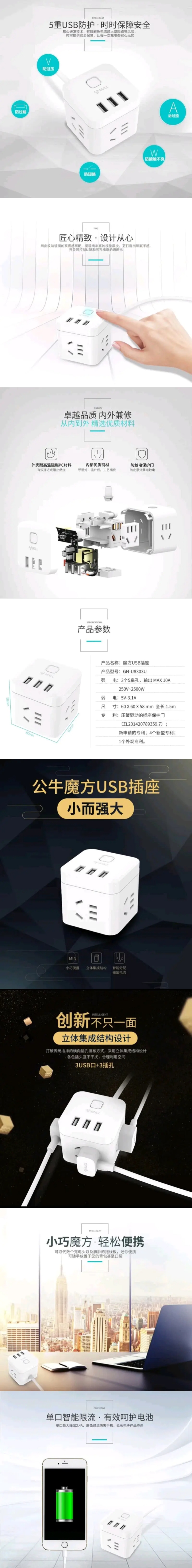 BULL/公牛魔方USB插孔插座GN-U8303U默认/1件装