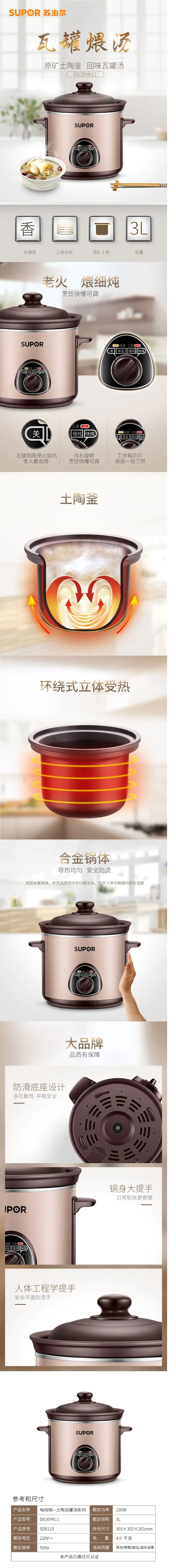 SUPOR/苏泊尔3升电炖锅DG30YK11默认/1件装