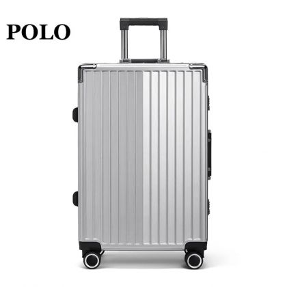 POLO拉杆箱轻音飞机轮行李箱登机箱旅行箱男女通用密码箱银色/24寸/1件装