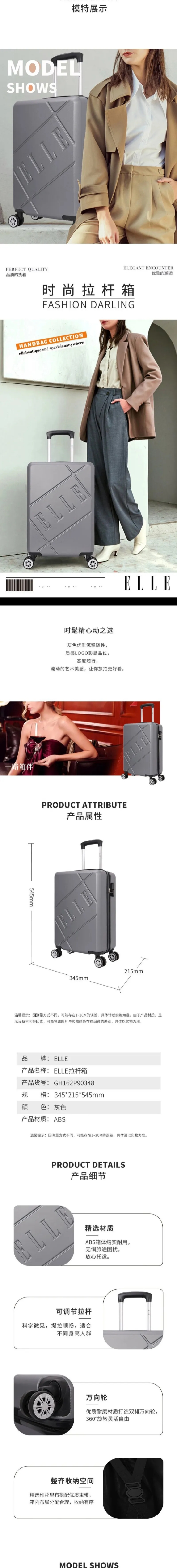 ELLE20寸简约时尚拉杆箱GH162P90348GY灰色灰色/1件装