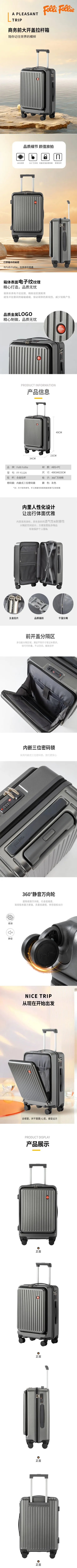 FolliFollie商务前大开盖拉杆箱20英寸FF-Y112A(LG24JLP009GY)/1件装