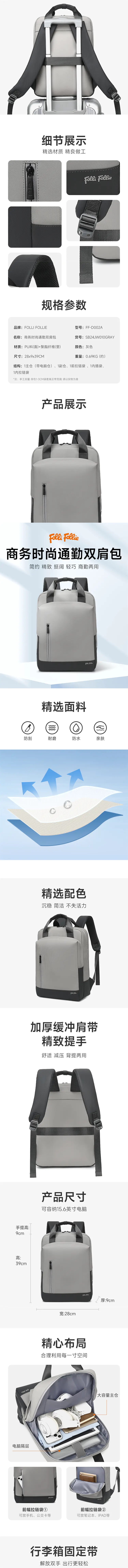 FolliFollie商务简约修身双肩包FF-D002A/1件装