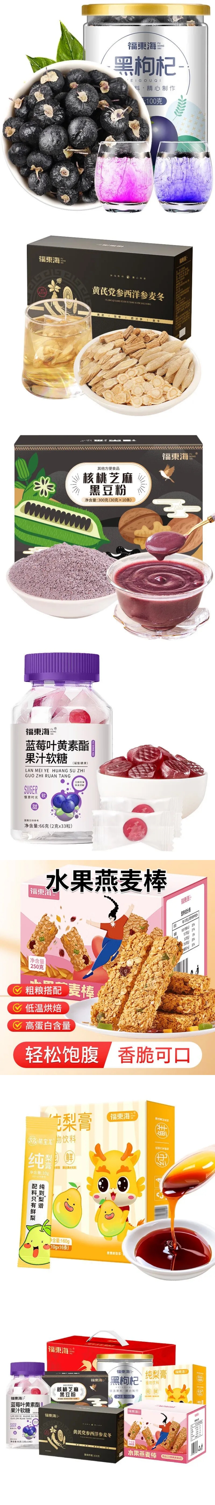 黑枸杞100g+核桃芝麻黑豆粉300g+燕麦棒250g+西洋参麦冬100g+叶黄素软糖66g+梨膏160g/1箱装