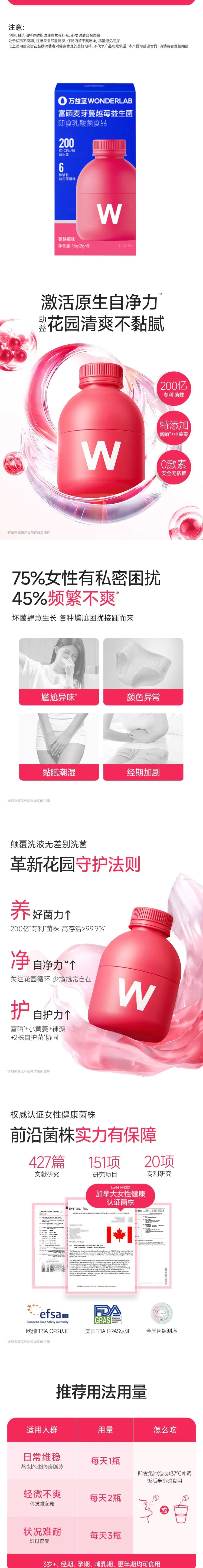 WONDERLAB/万益蓝富硒麦芽蔓越莓益生菌新版200亿即食乳酸菌食品16g(2g*8瓶)默认/1件装