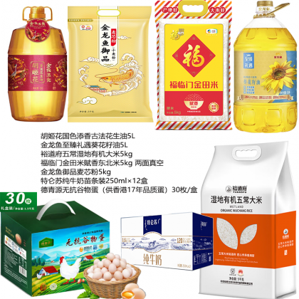 胡姬花花生油5L金龙鱼葵花籽油5L裕道府大米5kg福临门东北米5kg空金龙麦芯粉5kg特仑苏纯牛奶德青源无抗谷物蛋-800-yw