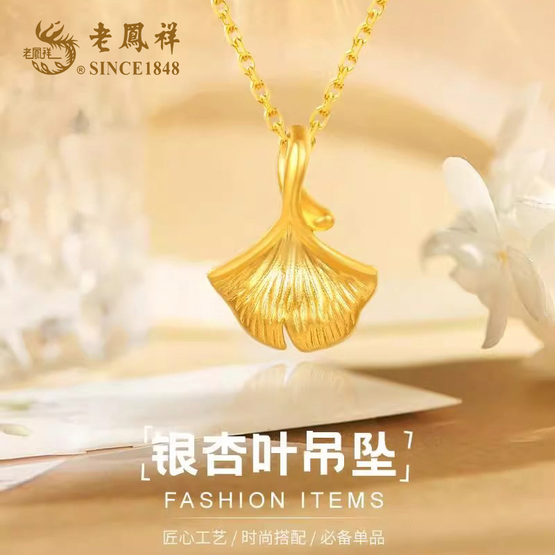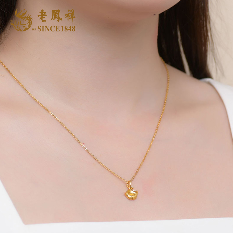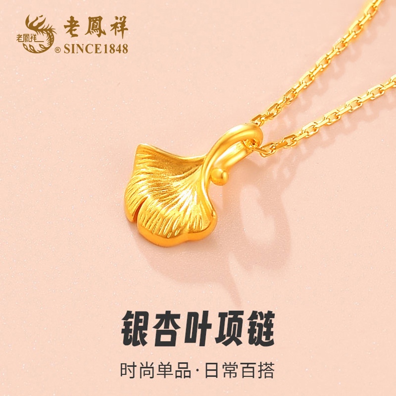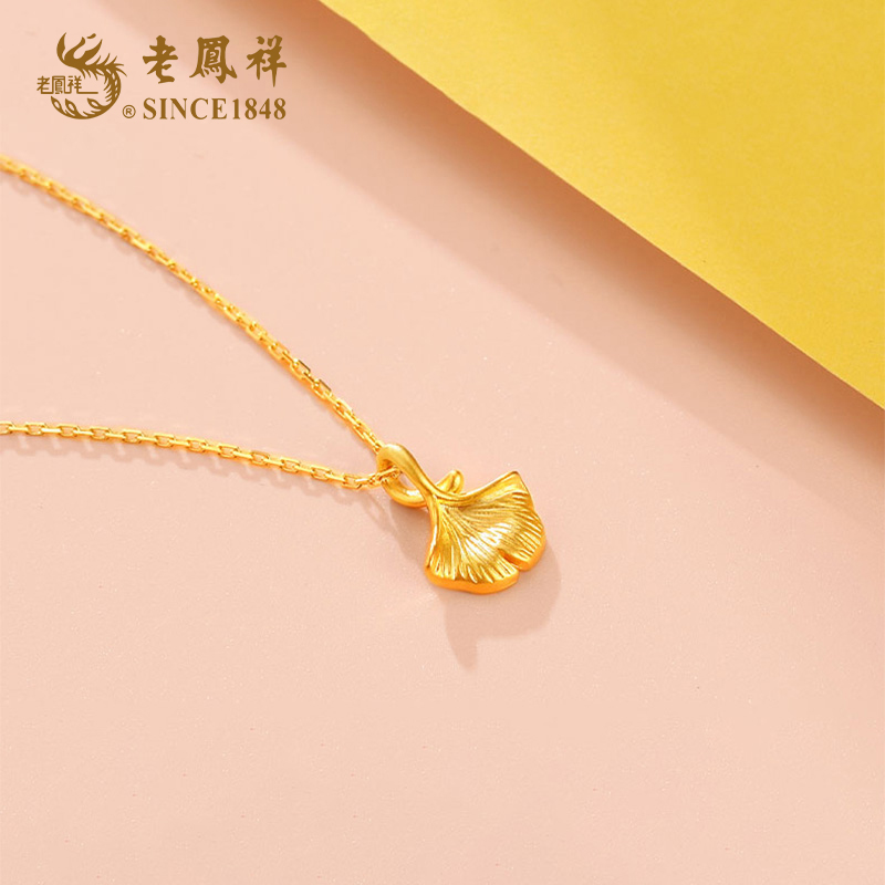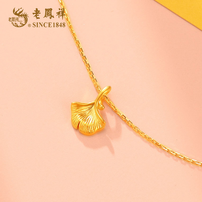 老凤祥 足金<三生有幸>银杏叶吊坠 (含S925银链)(单位:件 ) 金色