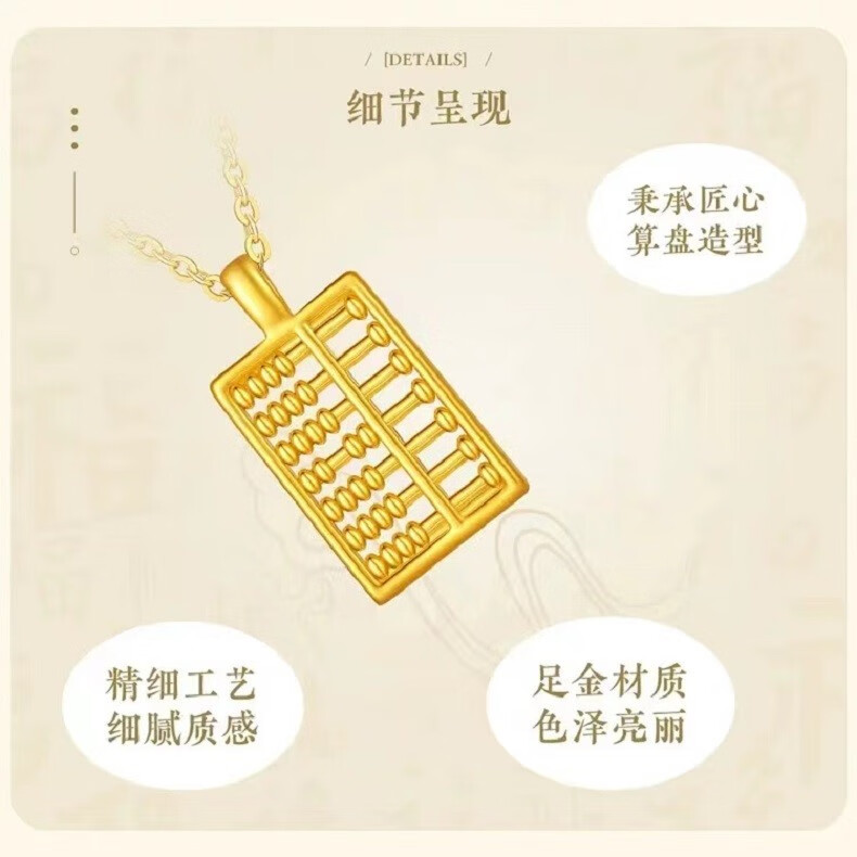 【设计寓意】算盘一响,黄金万两。传统算盘设计,寓意吉祥美好,称心如意,吉祥纳财,5D工艺打造INS风