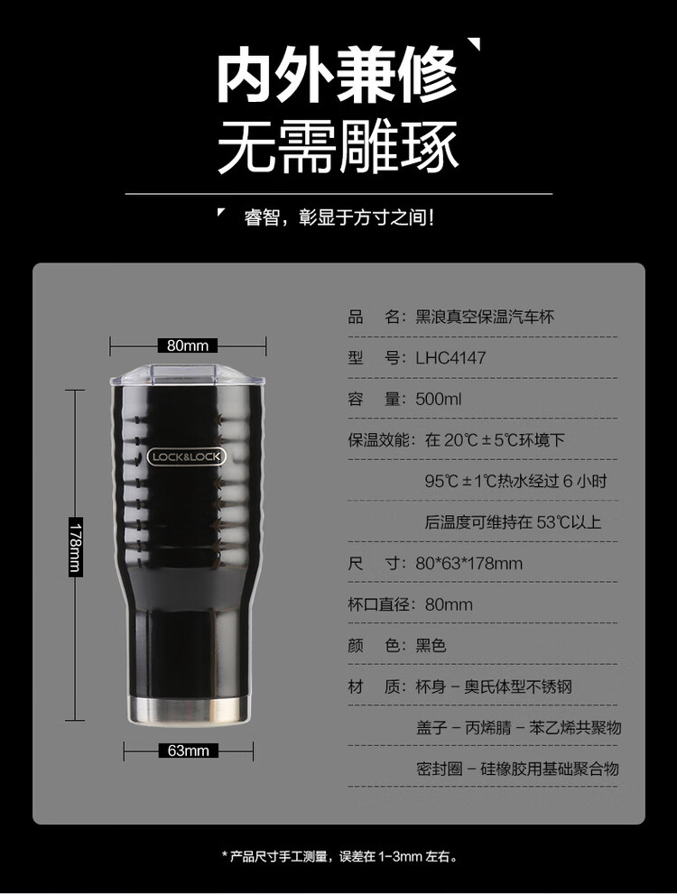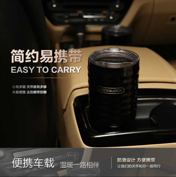 乐扣乐扣(LOCK&LOCK)真空保温汽车杯304不锈钢保温杯LHC4147BLK