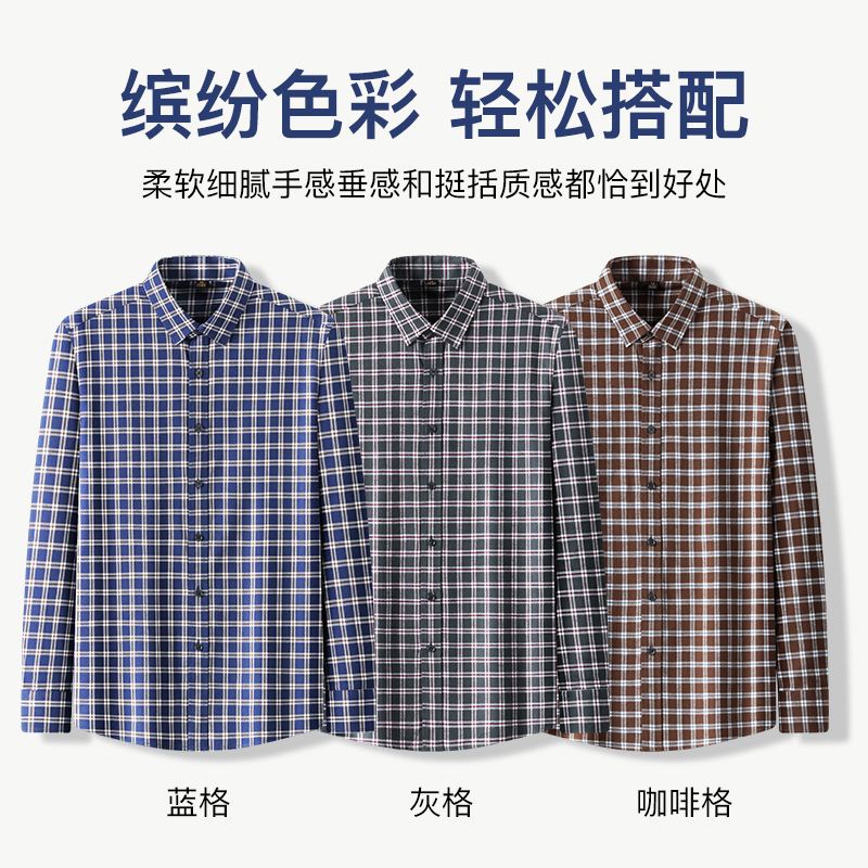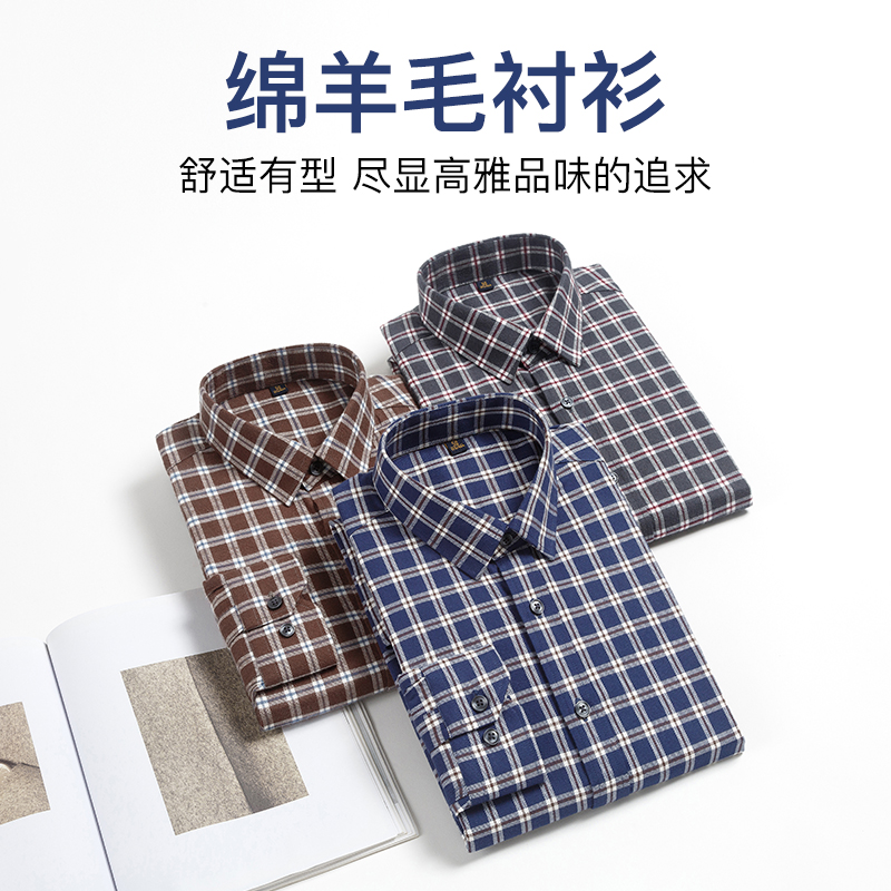 丰讯男士长袖绵羊毛衬衫格子休闲上衣春秋FXPS2422(单位:件) 蓝格 170