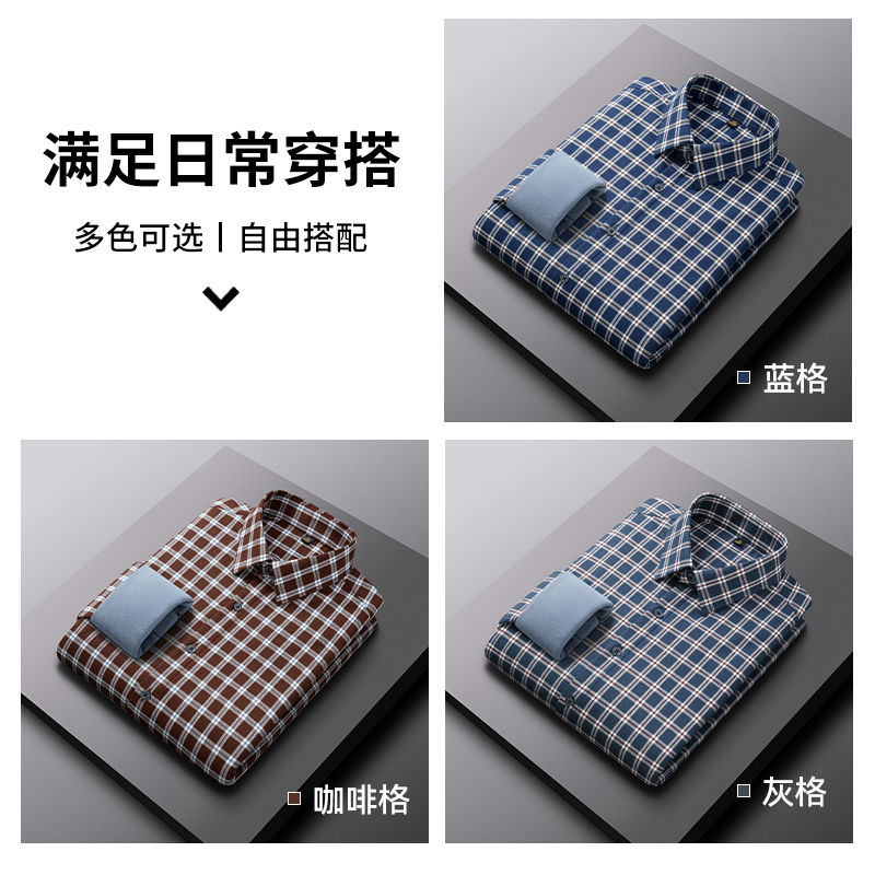 丰讯加绒格子上衣男士长袖绵羊毛保暖衬衫FXPS2481(单位:件) 咖啡格 170