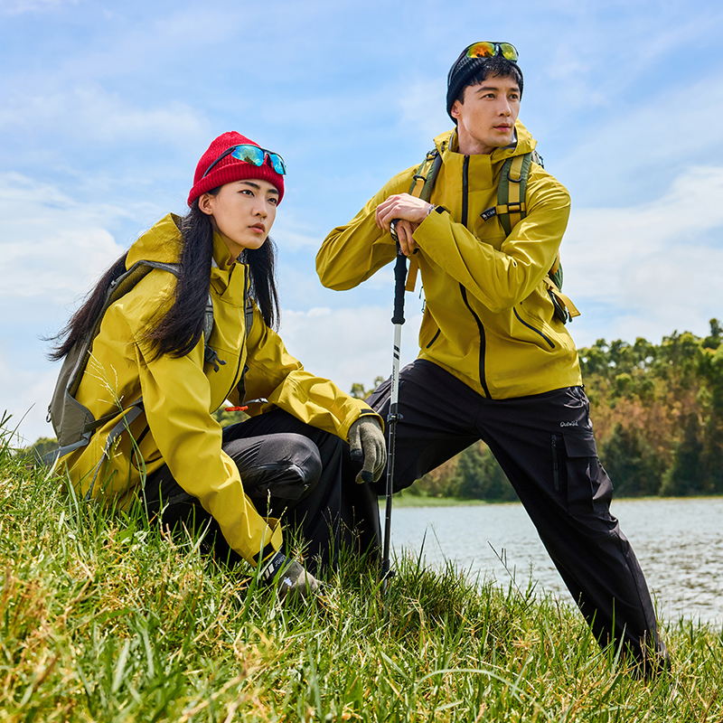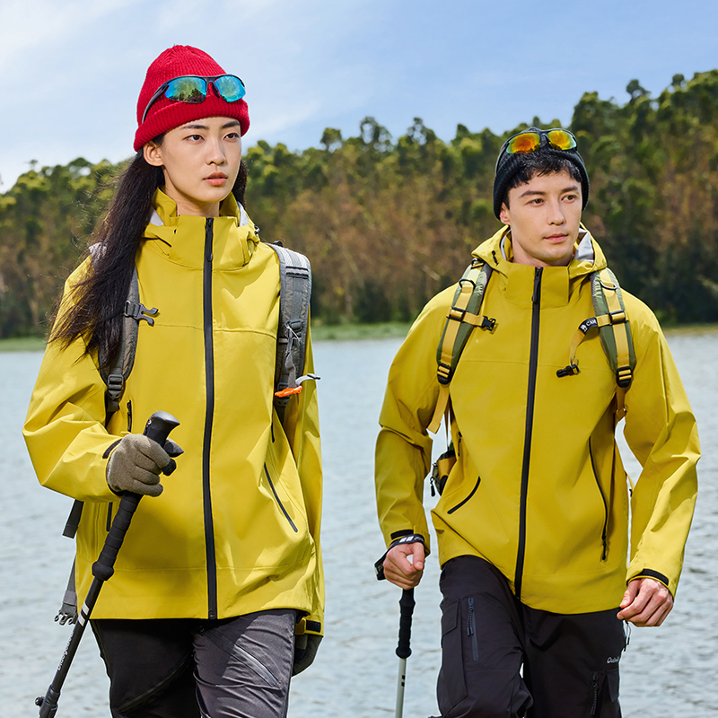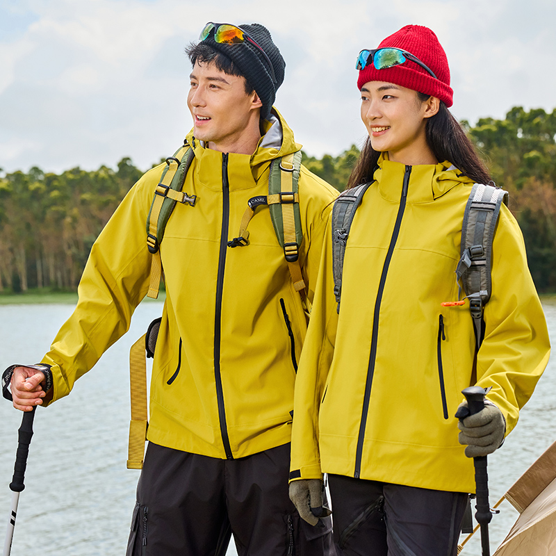 丰讯户外运动连帽单层冲锋衣情侣款休闲防风登山服外套FXXYD25(单位:件) 沙滩黄男女同款 S