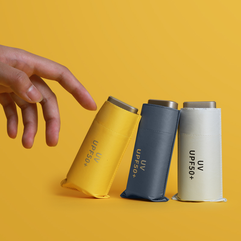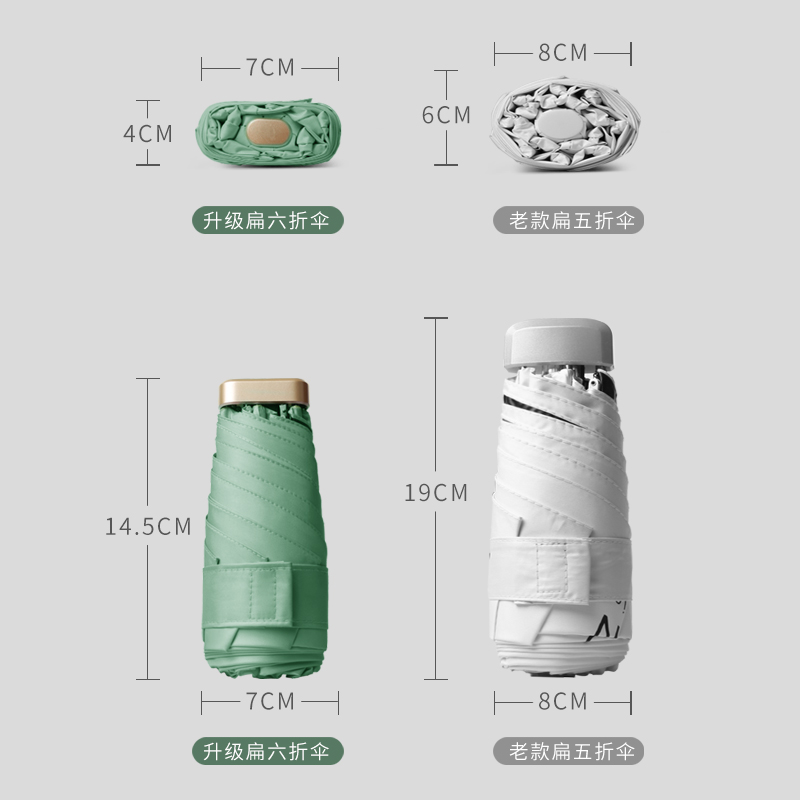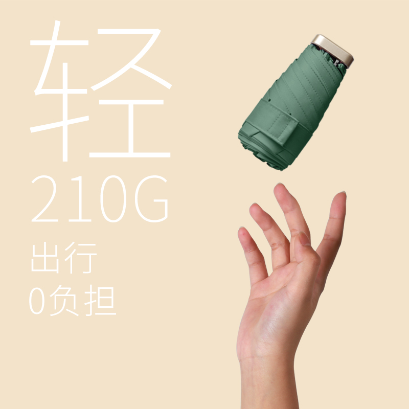 小巧便携,黑胶防晒,晴雨两用,阻隔99%紫外线,重量240g,收伞14cm,手掌大小