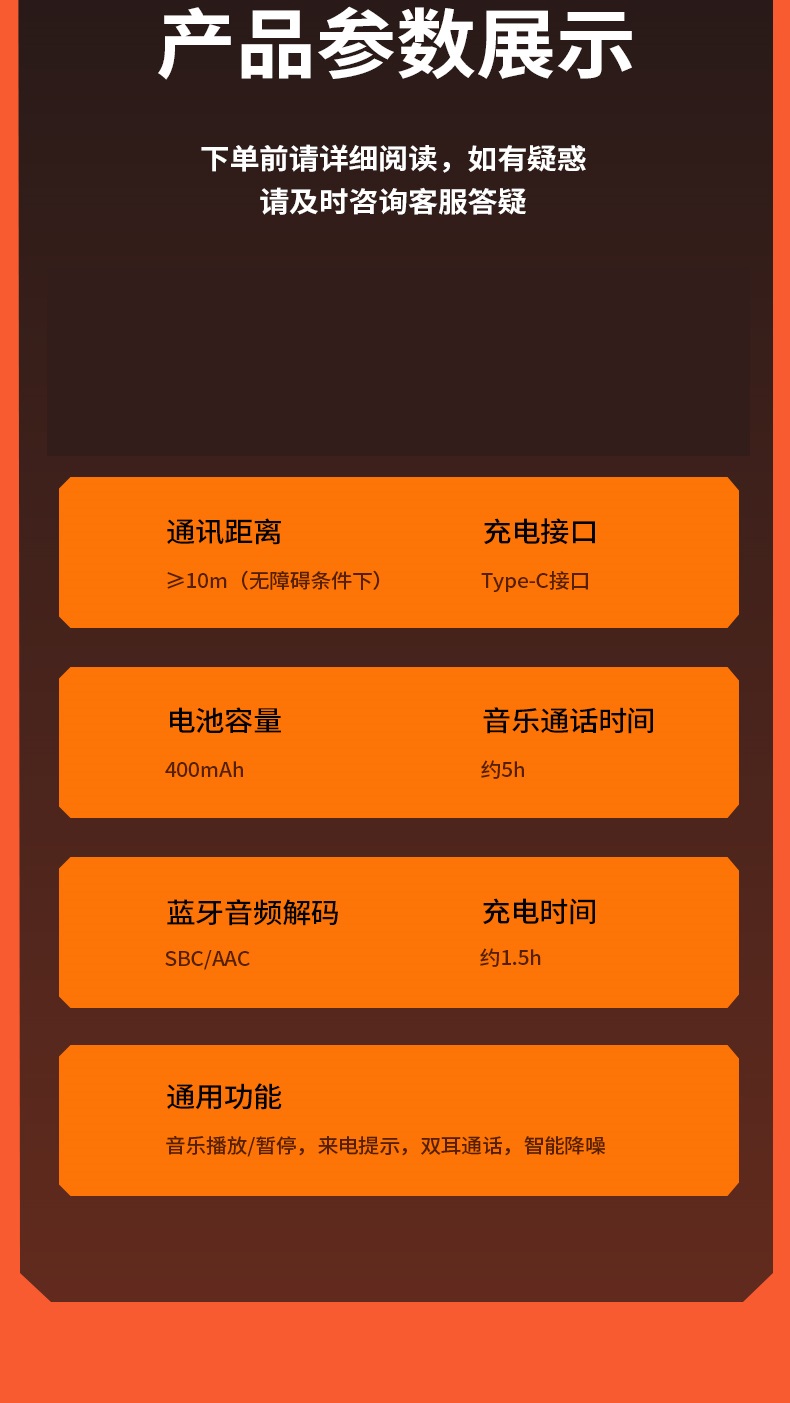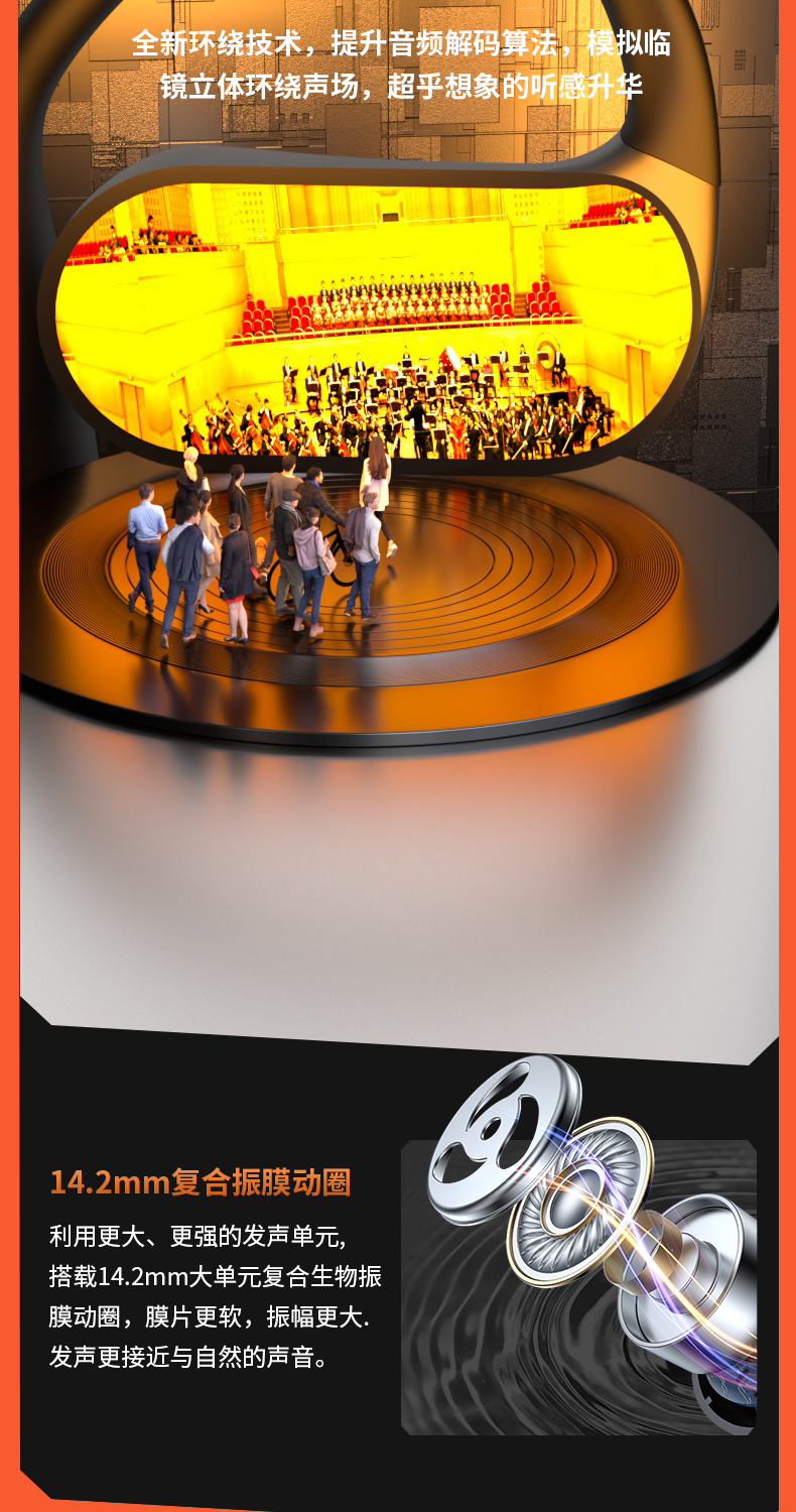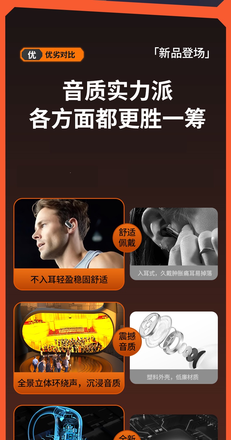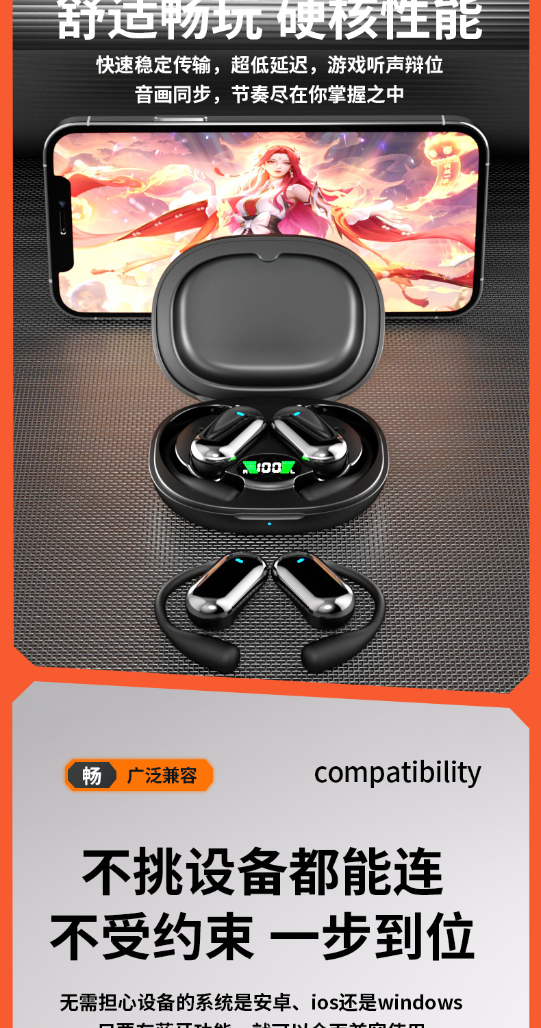 耳挂式设计、长时间佩戴舒适、通话降噪、定向传声、HIFI级音质、电量显示、触控操作、自动配对、佩戴舒