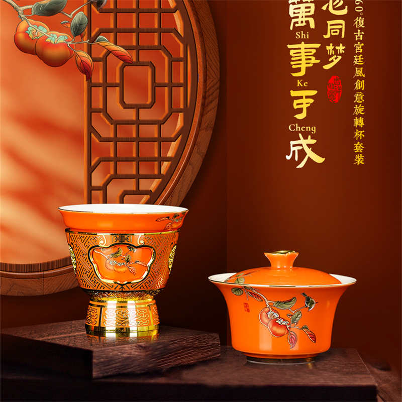 高足杯是陶瓷中的经典器型,本作品上运用了长寿纹、双龙纹、如意开窗等工艺